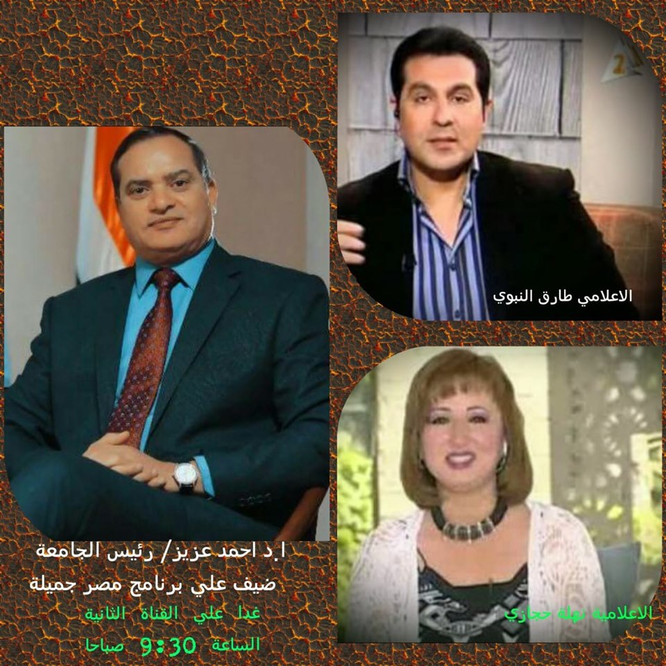 إستضافت القناة الثانية الاستاذ الدكتور احمد عزيز رئيس جامعة سوهاج مع المذيعة نهلة حجازي فى برنامج ( مصر جميلة ) متناولا عدد كبير من الموضوعات التى تهم الجامعة متضمنااهم القرارات و المقترحات المطروحة على الساحة العلمية و هى حول النقاط الاتية:-