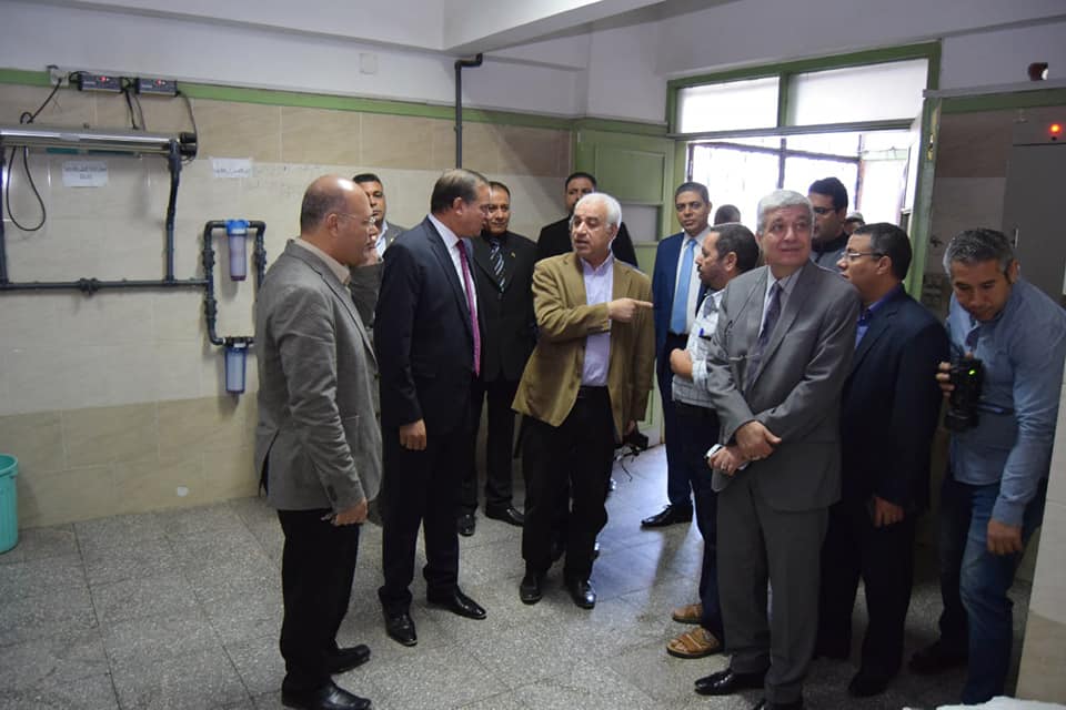 بدأ رئيس الجامعة جولته بتفقد أعمال تطوير وتجهيز وحدة الغسيل الكلوي للأطفال، حيث تفقد المكان الذي سوف يتم به إنشاء “وحدة معالجة المياة والخلط والضغط المركزي للاملاح “، التي سوف تساعد علي تقليل نسبة العدوي الميكروبية بين أطفال الغسيل الكلوي المزمن والتي تبلغ تكلفتها ٧ مليون جنية.