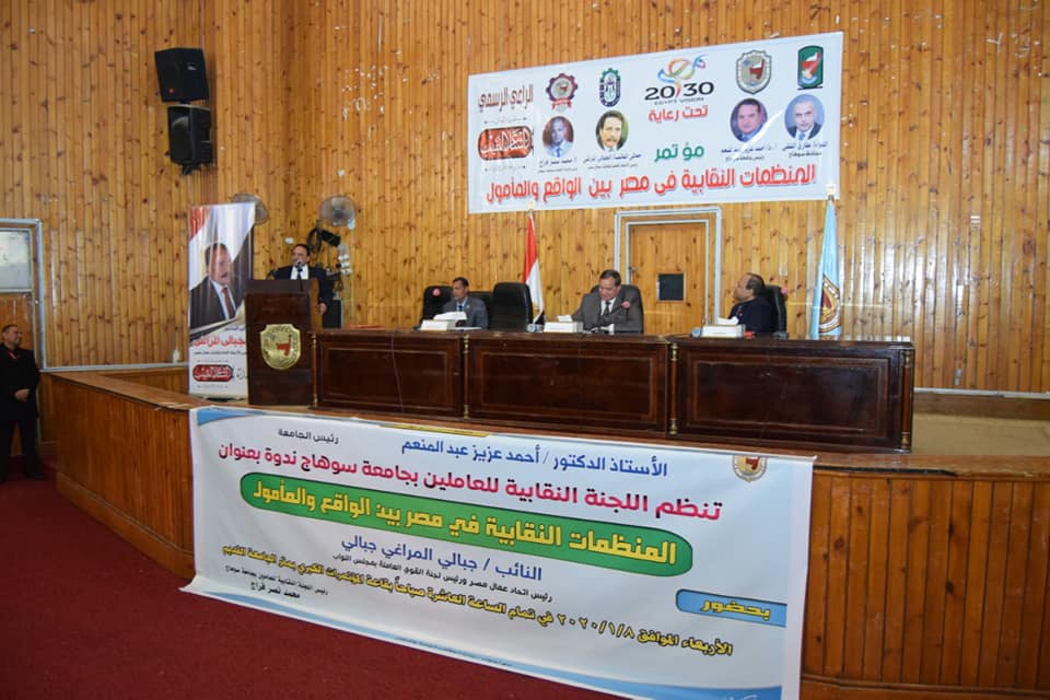 شهد الدكتور أحمد عزيز رئيس جامعة سوهاج، فعاليات المؤتمر التثقيفي الأول الذي نظمته نقابة العاملين بالجامعة تحت عنوان “المنظمات النقابية في مصر بين الواقع والمأمول”، وذلك بقاعة المؤتمرات الكبري بمقر الجامعة القديم، و بحضور النائب جبالي المراغي جبالي رئيس إتحاد عمال مصر ورئيس لجنة القوي العاملة بمجلس النواب، محمد حماد رضوان رئيس الاتحاد المحلي لنقابات عمال سوهاج، الدكتور هشام أحمد أبو زيد وكيل وزارة القوة العاملة، اللواء ممدوح مقلد عضو مجلس الشعب، محمد نصر فراج نقيب العاملين بالجامعة، ولفيف من أعضاء هيئة التدريس والعاملين بالجامعة، ونخبة من ممثلي النقابات العمالية بالمجتمع الخارجى.