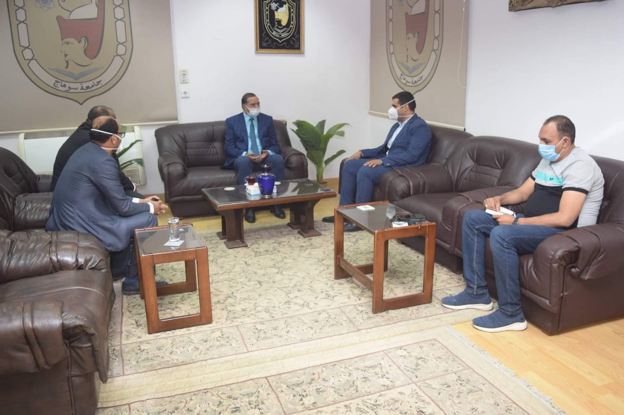 استقبل الدكتور أحمد عزيز رئيس جامعة سوهاج، بمكتبه، ممثلين عن شركة سيمنز Siemens للأجهزة الطبية، المسئولة عن توريد وتركيب أحدث أجهزة الرنين المغناطيسي بمقر المستشفى الجامعي الجديد بمدينة سوهاج الجديدة، بتكلفة تقارب ١٢.٣ مليون جنيه، وذلك بحضور المهندس محمود حسين مدير فرع الشركة بمحافظة أسيوط، والمهندس عمر علي مسئول المبيعات بالشركة، المهندس أحمد مجدي مسئول الصيانة.