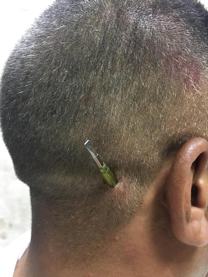 نجح فريق طبي من قسم جراحة المخ والأعصاب بمستشفى سوهاج الجامعي، في استخراج مفك يبلغ طوله ١٠ سم من رأس مواطن يبلغ من العمر ٤٥ عاماً، وانقاذ حياته بعد ما أصيب به أثناء مشاجره، صرح بذلك الدكتور أحمد عزيز رئيس الجامعة، وقال أنه حضر إلى قسم الطوارئ بالمستشفي الجامعي رجل من مدينة اخميم، تم اصابته بمفك مغروز بأسفل رأسه وممتد إلى الفقرات العنقية، حيث قام الأطباء بعمل الإسعافات الأولية، وبعد إجراء الإشاعات اللازمة تم التدخل الجراحي السريع اللازم للمريض ونقله إلى غرفة عمليات جراحة المخ والأعصاب .