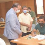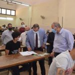 وخلال الجولة تابع الدكتور أحمد عزيز تطبيق إجراءات الوقاية من فيروس كورونا من تباعد في اللجان الامتحانية، ارتداء الطلاب والملاحظين الكمامات الطبية، استمرار عملية التعقيم قبل وأثناء وبعد تأدية الطلاب للامتحانات، كما استمع لتعليقات الطلاب على مستوى الإمتحان وعلى توفير وسائل الراحة داخل اللجان.