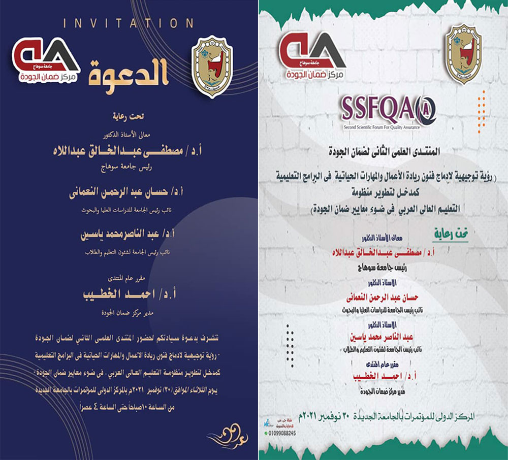 يعتزم مركز ضمان الجودة بجامعة سوهاج عقد المنتدى الثاني لضمان الجودة وذلك يوم الثلاثاء الموافق 30 نوفمبر 2021، بمقر مركز المؤتمرات الدولية بمقر الجامعة الجديد، صرح بذلك الدكتور مصطفى عبد الخالق رئيس الجامعة وقال ان المنتدى تحت عنوان رؤية توجيهية لادماج فنون ريادة الاعمال والمهارات الحياتية في البرامج التعليمية كمدخل لتطوير منظومة التعليم العالي العربي في ضوء معايير ضمان الجوده، مشيرا الى أن المنتدي سوف يتضمن ورش عمل متخصصة، تقديم رؤى علمية، وكذلك الخبرات والتجارب المتخصصه من الشركاء ومؤسسات المجتمع .