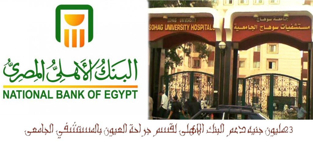 صرح الدكتور أحمد عزيز عبد المنعم رئيس جامعة سوهاج، أن مجلس إدارة البنك الأهلي المصري وافق علي منح الجامعة مبلغ ٢٧ مليون جنيه، وذلك لتطوير ودعم قسم طب وجراحة العيون بمبلغ ٢٣ مليون جنيه، وشراء جهاز لخدمة مرضي قسم جراحة القلب والصدر بمبلغ ٤ مليون جنيه.