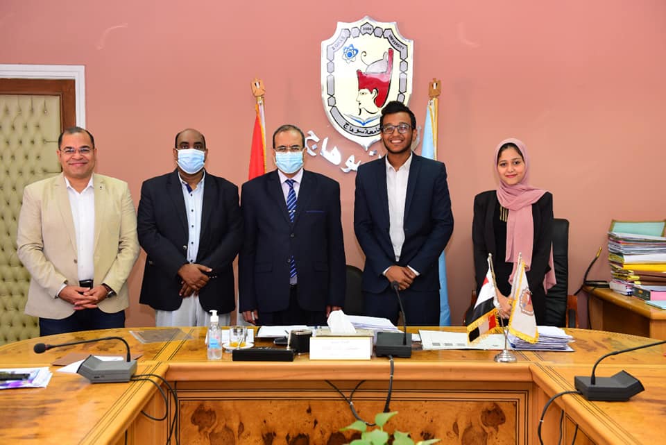 رئيس جامعة سوهاج يستقبل أعضاء الإتحاد المصرى لطلاب الصيدلة لمناقشة خطة العمل المستقبلية
