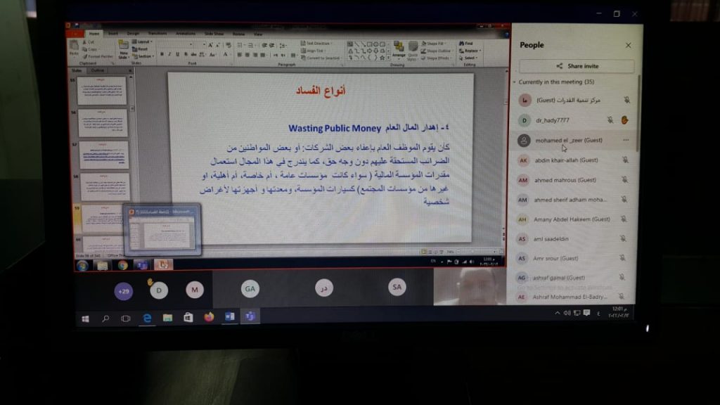 والذى إستهدف أعضاء هيئة التدريس ومعاونيهم بكليات الجامعة المختلفة، صرح بذلك الدكتور مصطفى عبدالخالق رئيس الجامعة، وقال أن البرنامج التدريبى يقام بصفة دورية “أون لاين”، لتعريف المتدربين بمفهوم الفساد وأنواعه وصوره المختلفة، وأيضا أسبابه وتأثيره على التنمية وحقوق الإنسان والمجتمع، لافتاً أن البرنامج التدريبى يتم عن طريق إستخدام برنامج ميكروسوفت تيمز.