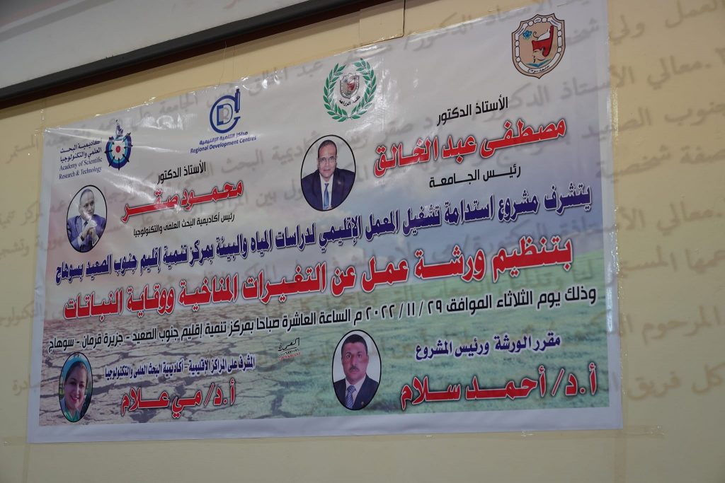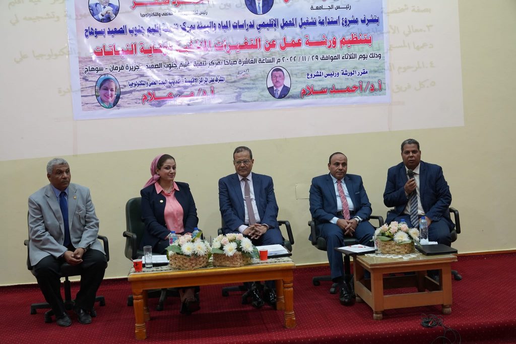 شارك الدكتور مصطفي عبد الخالق رئيس جامعة سوهاج في فعاليات ورشة عمل عن “التغيرات المناخية ووقاية النباتات” و التي نظمها مشروع استدامة تشغيل المعمل الإقليمي لدراسات المياه والبيئة، بمركز تنمية إقليم جنوب الصعيد بسوهاج التابع لأكاديمية البحث العلمي، بجزيرة قرمان، وذلك بحضور الدكتور خالد عمران نائب رئيس الجامعة لشئون تنمية البيئة وخدمة المجتمع والدكتور خلف همام القائم بعمل عميد كلية الزراعة والدكتورة مي علام المشرف علي مراكز التنمية الإقليمية بأكاديمية البحث العلمي والتكنولوجيا، والدكتور أحمد سلام مقرر الورشة وعدد من أعضاء هيئة التدريس وطلاب الفرقة الرابعة لبرنامج وقاية النبات من كلية الزراعة، ولفيف من الهيئات وممثلي منظمات المجتمع المدني بسوهاج.