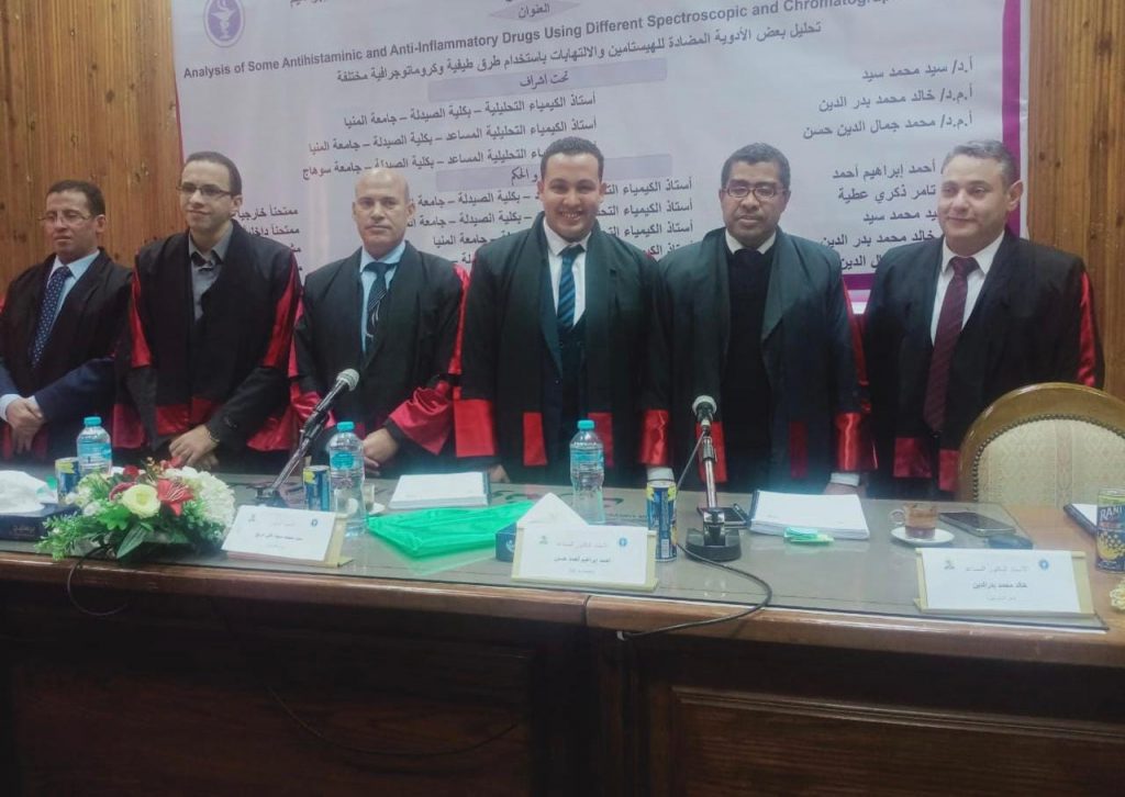 و الدكتور محمد جمال الدين أستاذ الكيمياء التحليلية المساعد بكلية الصيدلة جامعة سوهاج (مشرفاً وممتحناً).