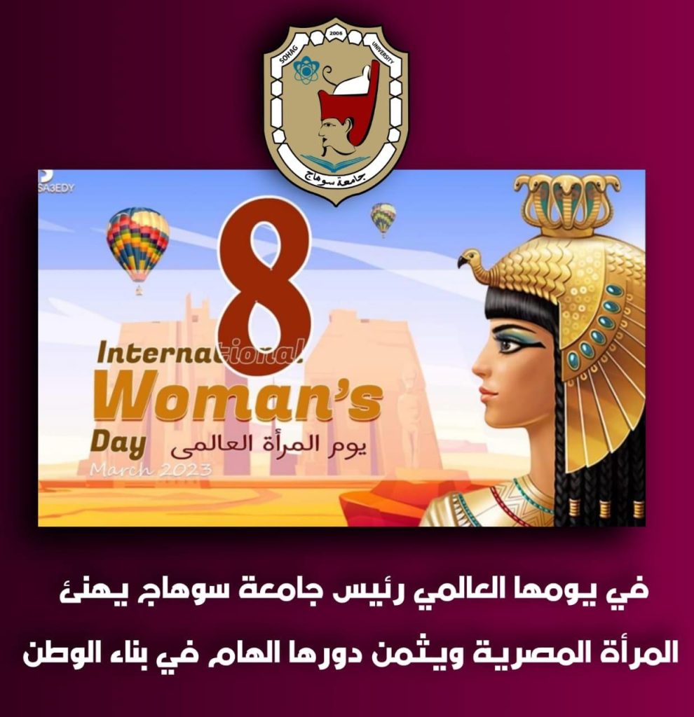 وجه الدكتور مصطفي عبد الخالق رئيس جامعة سوهاج التهنئة للمرأة المصرية في يومها العالمي ، والذي يوافق ٨ من شهر مارس من كل عام، وهي المناسبة التي يذكر فيها العالم أهم انجازاتها، ويعترف بكونها عنصر مهم و شريك أساسي في التنمية، لتحقيق النهضة بكل المجتمعات.