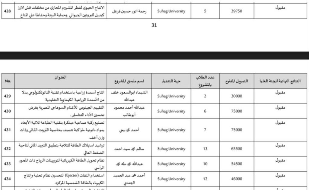 في ضوء إهتمام الرئيس السيسي بدعم المشروعات الطلابية..واتساقاً مع الإستراتيجية الوطنية للتعليم العالي والبحث العلمي..جامعة سوهاج تفوز بتمويل ٧ مشروعات من برنامج مشروعي بدايتي بأكاديمية البحث العلمي