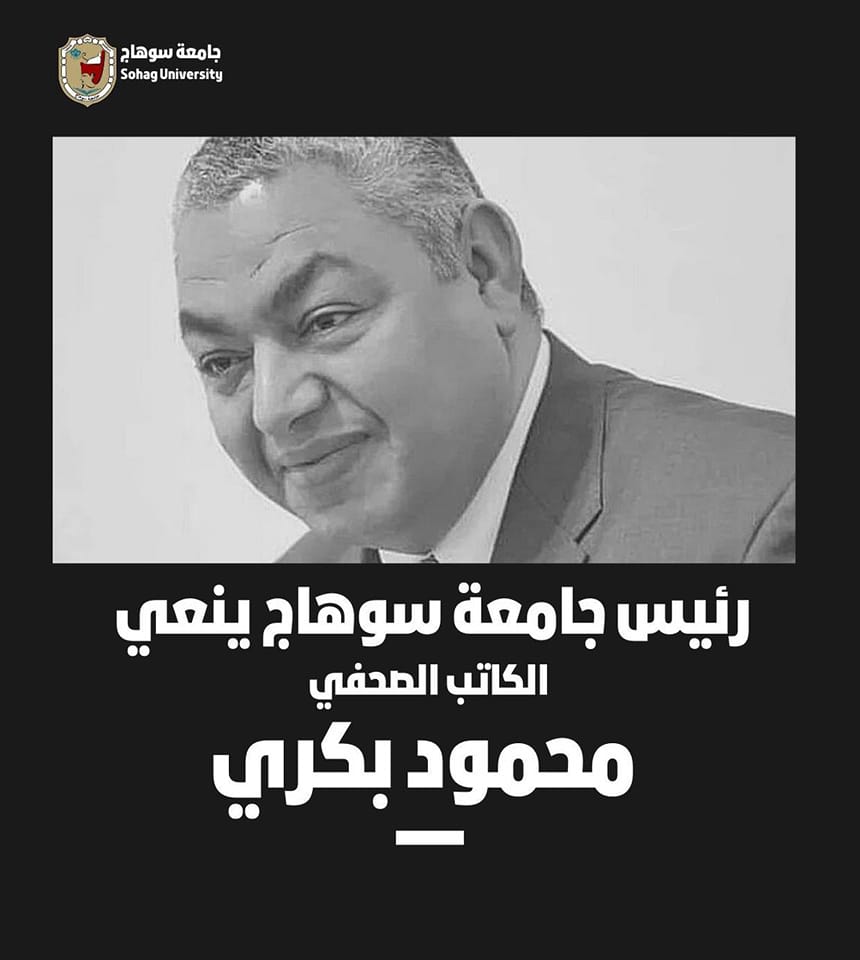 نعي الدكتور مصطفي عبد الخالق رئيس جامعة سوهاج ببالغ الحزن والأسى،الكاتب الصحفي وعضو مجلس الشيوخ الدكتور محمود بكري، والذي وافته المنية مساء أمس بعد صراع طويل مع المرض.