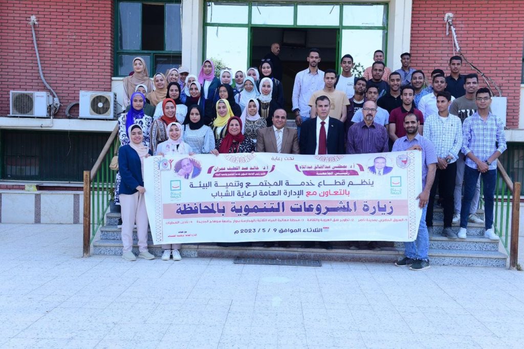 تواصل جامعة سوهاج تنفيذ برنامج الزيارات الميدانية الطلابية لتفقد المشروعات التنموية بالمحافظة، حيث نظم قطاع خدمة المجتمع وتنمية البيئة بالتعاون مع الإدارة العامة لرعاية الشباب، زيارة ميدانية لتفقد السوق الحضري بمدينة ناصر، ومشروع تطوير نفق العروبة، وأيضاً مشروع محطة معالجة المياه الثلاثية بالهجارسة بجوار مقر الجامعة الجديد، وكذلك زيارة نادي المحليات، صرح بذلك الدكتور مصطفي عبد الخالق رئيس الجامعة، وقال أنه تم تنفيذ الزيارات الميدانية تفعيلاََ لتوجيهات القيادة السياسية بأهمية توعية شباب الجامعات بالجهود التى تبذلها الدولة لتحقيق أهداف التنمية المستدامة ورؤية مصر ٢٠٣٠، وأيضاً فى إطار مبادرة «من حقك تعرف» والتي أطلقها اللواء طارق الفقي محافظ سوهاج، لتعريف الشباب بالمشروعات القومية في مختلف القطاعات، وللتعرف على مشروعات المبادرة الرئاسية لتطوير الريف المصري «حياة كريمة».
