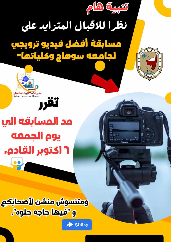 مد مسابقه افضل فيديو ترويجي لجامعه سوهاج وكلياتها الي ٦ اكتوبر القادم