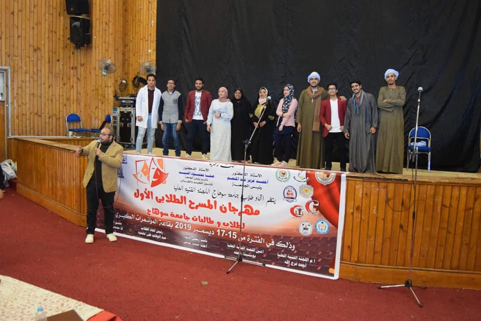 تتواصل لليوم الثاني فاعليات مهرجان المسرح الطلابي الاول لكليات جامعة سوهاج، والذي تنظمه اللجنة الفنية العليا لاتحاد الطلاب، في الفترة من ١٥ الي ١٧ ديسمبر الجاري، بقاعة المؤتمرات الكبري بالمقر القديم للجامعة، صرح بذلك الدكتور احمد عزيز رئيس الجامعة وقال أن الأنشطة الطلابية التي تنفذها الجامعة تسعي في المقام الاول الي اكتشاف ابداعات ومواهب الطلاب ودعمها، وخاصة أنشطة المسرح باعتبارها أحد المنصات الفنية المهمة التي تضم مختلف الفنون من التمثيل والتأليف والاخراج، مشيراً الي ان هذا المهرجان يهدف الي صقل جميع الفنون الأدائية المسرحية لدىض الطلاب، وتقديم عروض هادفة تعزز الولاء والانتماء الوطني، وتستمد موضوعاتها من عقيدة المجتمع وفكره وثقافته، الي جانب اجتذاب الطلاب الذين لديهم الوعي بأهمية المسرح الجامعي ورسالته.
