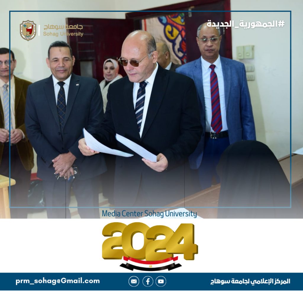 Dr. Hassan Al-Noamani, President of Sohag University, during his tour this morning to inspect the progress of the first semester exams for the academic year 2023-2024 in the Faculties of Arts, Education and Engineering at the university’s new headquarters, directed the need for the staff members to be present within the committees to answer all students’ inquiries, and to provide the appropriate climate for them to perform them easily.