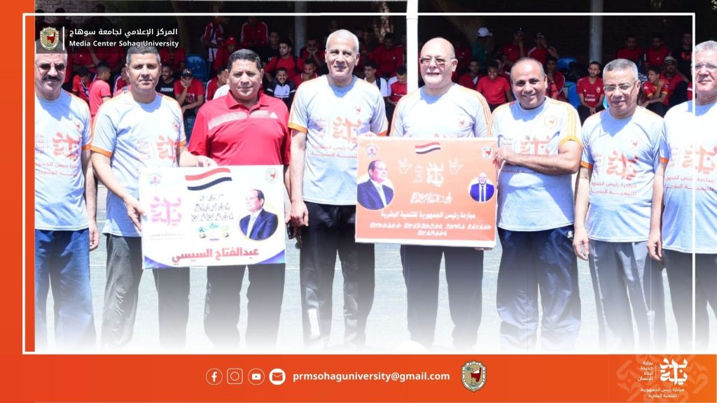 Dr. Hassan Al-Nomany, President of Sohag University, launched the “100 Days of Sports” initiative, under the patronage of Dr. Mohamed Ayman Ashour, Minister of Higher Education and Scientific Research, as part of the presidential initiative “A New Beginning for Human Building,” which aims to promote physical activity and encourage students to follow a healthy lifestyle, as the university implemented a festival of various sports activities, on the grounds of the university dormitories stadiums, in the presence of Dr. Abdel Nasser Yassin and Dr. Khaled Abdel Omran, vice presidents of the university.