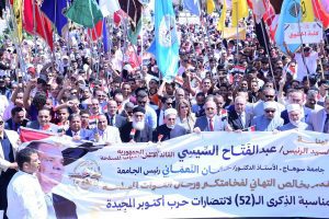 ١٠ الاف طالب وطالبه بجامعة سوهاج على خُطى الأبطال..يهتفون نحمل الراية… ونُكمل المسيرة.. احتفالا بالذكري ال٥٢ لانتطارات اكتوبر