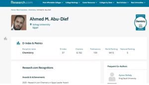 عالم بعلوم سوهاج يحصد جائزة الريادة في مجال الكيمياء في مصر لعام 2025