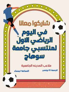 شا ركوا معانا في اليوم الرياضي الاول لمنتسبي جامعة سوهاج يوم الجمعة الساعة ٢ مساءاً بملاعب المدينة الجامعية