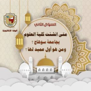 السؤال الرابع من المسابقة الرمضانية :- السؤال الرابع من المسابقة الرمضانية :- كلية بجامعة سوهاج أنشئت عام 1971م ما هي وما هو عدد الاقسام بها .؟ شروط وتفاصيل المسابقة :- 1- التأكد من عمل اعجاب ومتابعة للصفحة 2- الرد بتعليق Read more
