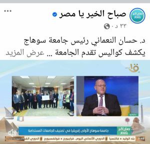 Prof. Hassan Al-Noamany, President of Sohag University, announced that the university has won the first position among the Egyptian and African universities in the GreenMetric international ranking of sustainable universities for the year 2024, as the university jumped 65 global Read more
