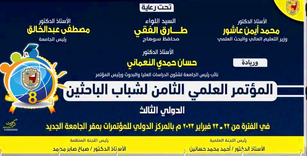 أعلنت اللجنة العلمية للمؤتمر العلمي الثامن لشباب الباحثين “الدولي الثالث” بجامعة سوهاج، إن غدا سيتم استعراض كافة الأبحاث المقدمة للمؤتمر وتحكيمها، برئاسة الدكتور أحمد حسانين رئيس اللجنة العلمية وذلك لإختيار أفضل بحث ملقى وأفضل بوستر وأفضل مشروع بحثي طلابي مشارك بالمؤتمر،تحت رعاية الاستاذ الدكتور مصطفي عبد الخالق رئيس الجامعة و تحت رعاية الدكتور أيمن عاشور وزير التعليم العالي والبحث العلمي، واللواء طارق الفقي محافظ الإقليم.