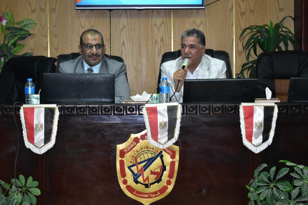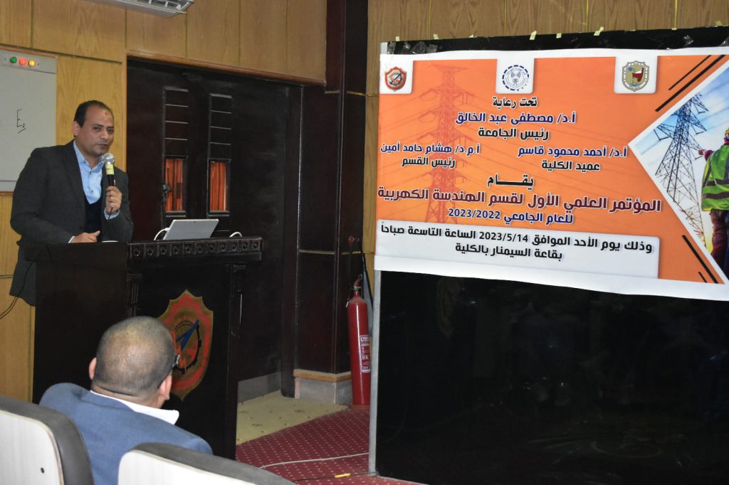 نظم قسم الهندسة الكهربائية بكلية الهندسة بجامعة سوهاج فعاليات المؤتمر العلمي الأول للقسم، بحضور كلاً من الدكتور أحمد قاسم عميد الكلية والدكتور هشام حامد رئيس قسم الهندسة الكهربائية بالكلية، المهندس محمد فهمي مدير عام الوقاية بشركة نقل الكهرباء بسوهاج، المهندس حسني محمد مدير عام التشغيل والصيانة قطاع توزيع كهرباء سوهاج والمهندس محمود جاد الرب مدير إدارة مركزي تدريب سوهاج والمنيا بالشركة المصرية للإتصالات، و أعضاء هيئة التدريس ومعاونيهم والطلاب وخريجي القسم، وذلك بقاعة السيمنار بالكلية بالحرم الجامعي الجديد.
