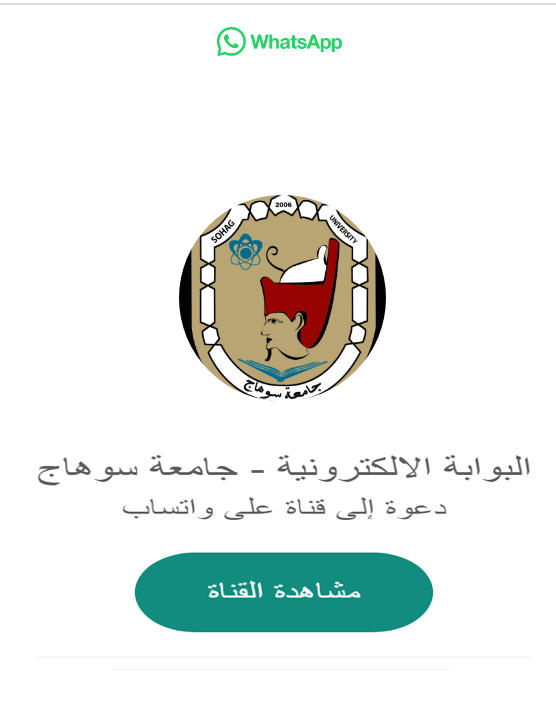 يسر فريق البوابة الالكترونية بقيادة الدكتور محمد حشمت عبد اللاه و المهندس طه الهلالي عن انطلاق البث الاول لقناة البوابة الالكترونية على الواتساب بهدف تغطية الاخبار و أهم احداث و فاعليات الجامعة تحت عنوان ( قناة البوابة الالكترونية بجامعة سوهاج ) .