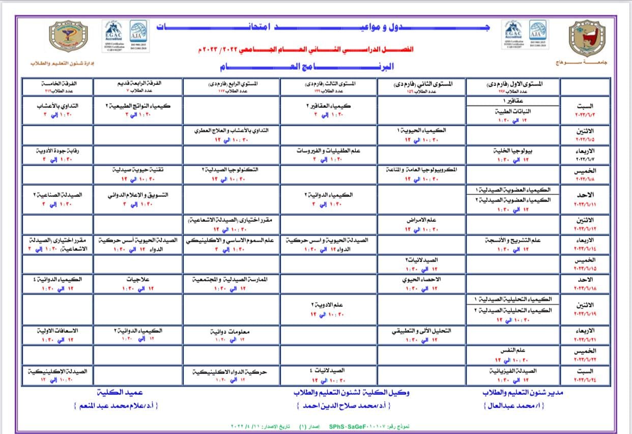جداول الامتحانات للعام الجامعي 2022- 2023
