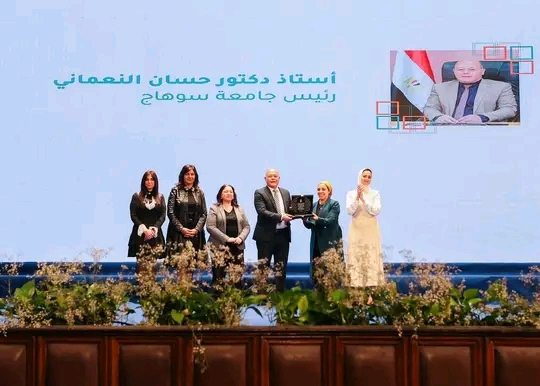 Hayat Karima Foundation honored Dr. Hassan Al-Noamany, President of Sohag University, in the celebratory activities it organized on the occasion of the International Human Solidarity Day, which falls on December 20 of each year, in appreciation of his outstanding efforts in the community initiatives, and the great role played by the university administration in activating the goals of the “Hayat” presidential initiative “Hayat Karima,” which was launched by President Abdel Fattah El-Sisi, President of the Republic, in January 2019.