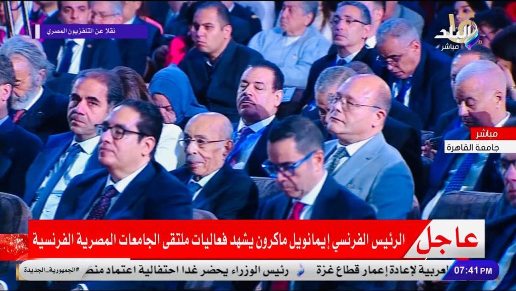 In addition to providing training, qualifications, and innovation support, the French President was received by Dr. Ayman Ashour, Minister of Higher Education; Dr. Mohamed Sami Abdel Sadek, President of Cairo University; Dr. Mostafa Refaat, Secretary of the Supreme Council of Universities; Dr. Philippe, French Minister of Higher Education; and leaders from the Ministry of Higher Education and French educational institutions.