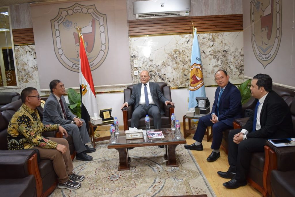 Dr. Hassan El-Nomany, President of Sohag University, recently received Mr. Mohamed Zaim El-Khalis Nasution, Deputy Ambassador of Indonesia to the Arab Republic of Egypt.