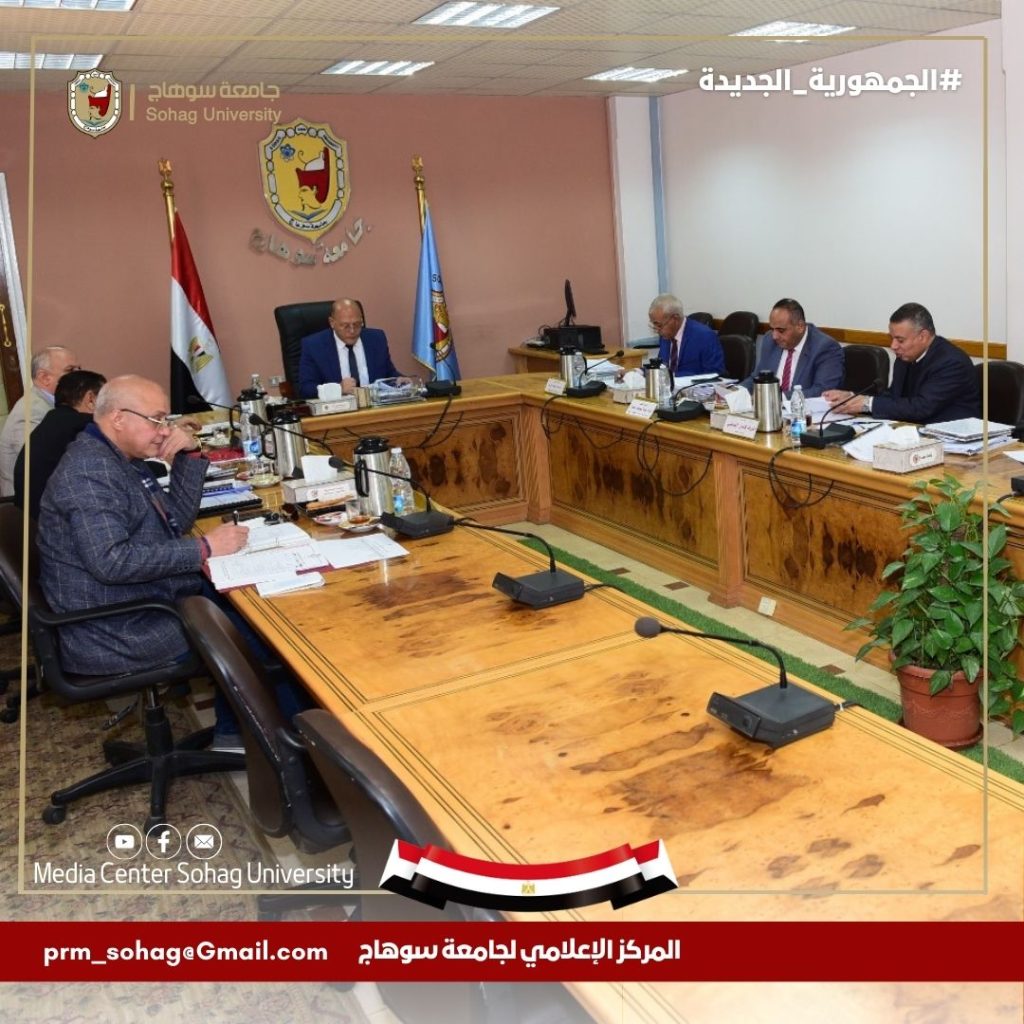 ,in the presence of the members of the committee consisting of Dr. Hassan Al-Nomani, Chairman of the Committee, and the membership of Dr. Abdel Nasser Yassin, Vice President of the University for Student Education Affairs, Dr. Khaled Omran, Vice President of the University for Community Service and Environmental Development Affairs, and Dr. Nabil Nour El-Din, former University President, Accountant. Ashraf El-Qadi, Secretary-General of the University, Counselor Mohamed Diaa El-Din, Legal Advisor to the University, and Essam El-Hanawy, Director of the Directorate of Organization and Administration in Sohag.