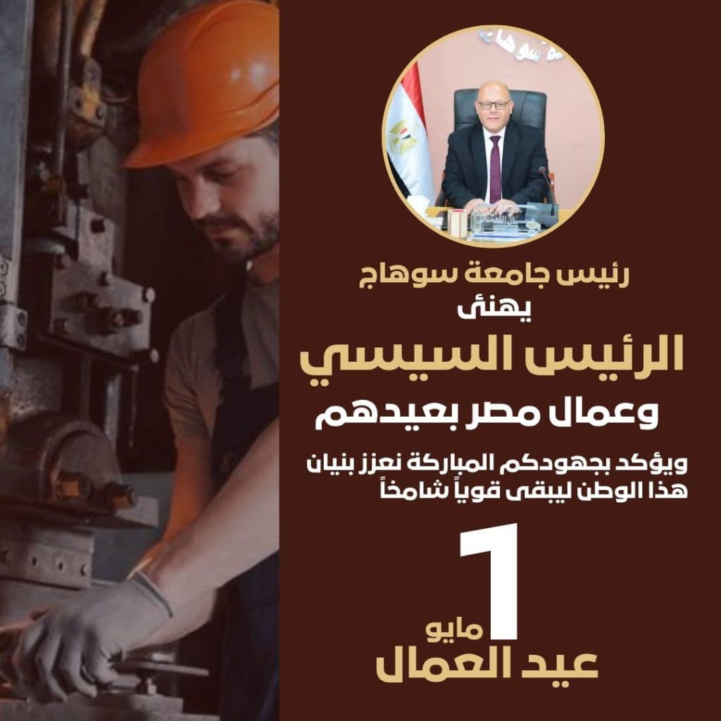 Dr. Hassan Al-Nomani, President of Sohag University, extended his sincere congratulations to the political leadership under the auspices of President Abdel Fattah Al-Sisi and to the employees of Egypt in general and the university’s employees in particular on the occasion of Labor Day.