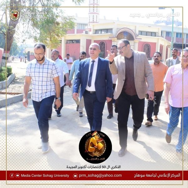 Prof. Hassan Al-Noman, Sohag University President, inspected sixth year students exams at faculty of medicine at the old campus, accompanied by Prof. Mohamed Nasr El-Din Thabet, vice dean of faculty of education, Prof. Samir Abdel Majeed, Professor of General Surgery at faculty of medicine, and Dr. Hani Al-Sharif, faculty Secretary general.