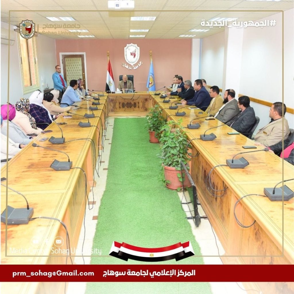Dr. Hassan Al-Noamani, President of Sohag University, honored the team work on the environmentally friendly university file participating in the International ranking of Sustainable Universities “UI GreenMetric” for 2023, for their efforts in making the university obtain first place at the level of Egyptian and African universities in the facilities and infrastructure standard, and achieving the 320th position among 1,183 international universities, and eighth place out of 40 African universities, in the presence of Dr. Khaled Omran, Vice President of the University for Community Service and Environmental Development Affairs, and Dr. Hamdy Hassanein, Dean of faculty of Graduate Studies and Environmental Research, Director of the Center of Sustainable Development, and General Coordinator of the University’s Environmentally Friendly File and a group of staff members who supervise standards, and members of the administrative staff involved in compiling, coordinating, and translating data.