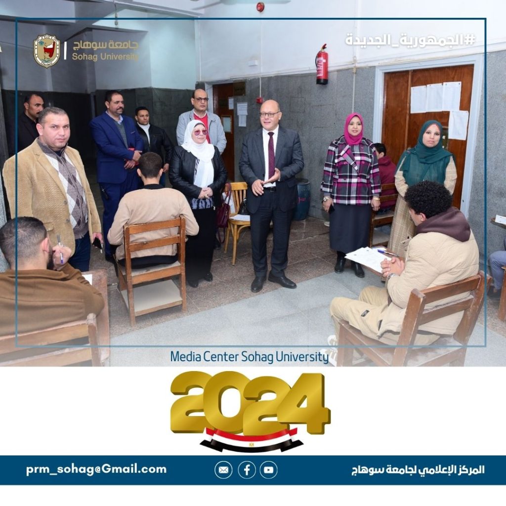Dr. Hassan Al-Noamani, President of Sohag University, continues his inspection tours of the exams for the first semester 2023-2024, in the Faculties of Science and Specific Education on the old campus.