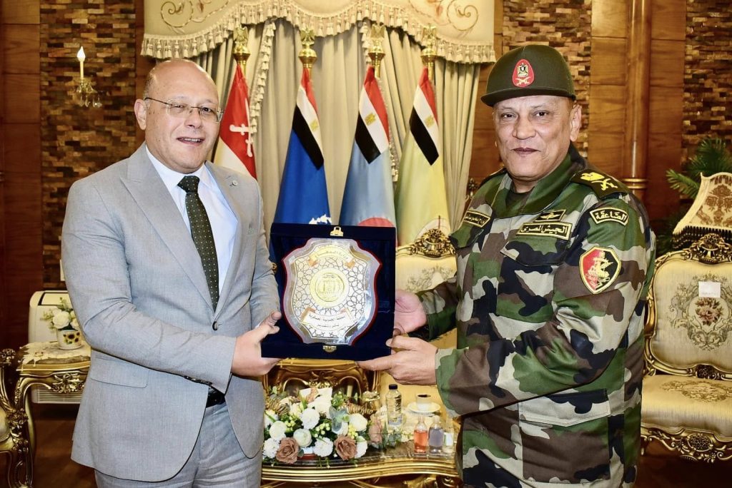 Dr. Hassan Al-Nomany, President of Sohag University, visited the Southern Military Region, during which he congratulated the Major General Osama Samir Abdel Latif on his appointment as a Commander of the Southern Military Region.