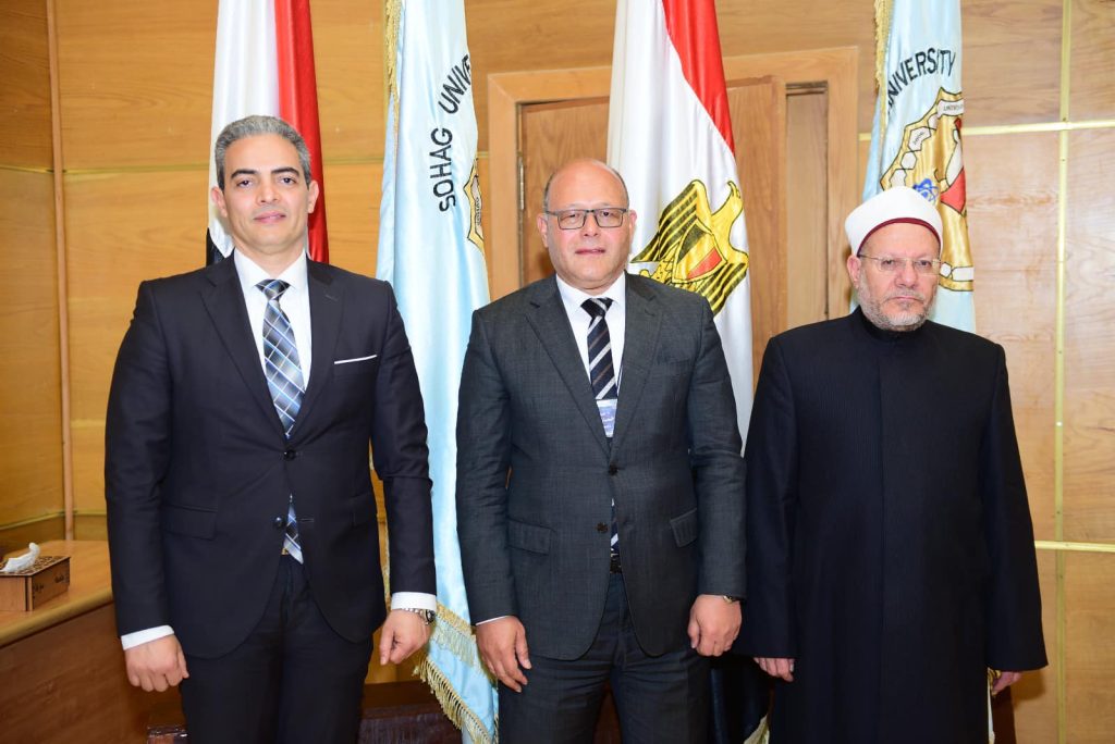 The activities of the ninth scientific conference for young researchers at Sohag University were concluded in the presence of Prof. Hassan Al-Nomany, President of the University, Dr. Shawqi Allam, Mufti of Egypt, Dr. Tariq Saada, Head of the Media Syndicate, prof Abdel Nasser Yassin, Vice President of the University for Education and Student Affairs, and prof. Khaled Omran, Vice President of the University for Community Service and Environmental Development Affairs. Prof. Ahmed Hassanein, Chairman of the Scientific Committee, Prof. Sabah Saber, Chairman of the Organizing Committee, and a number of staff members and young researchers at the International Conference Center at the New University headquarters.