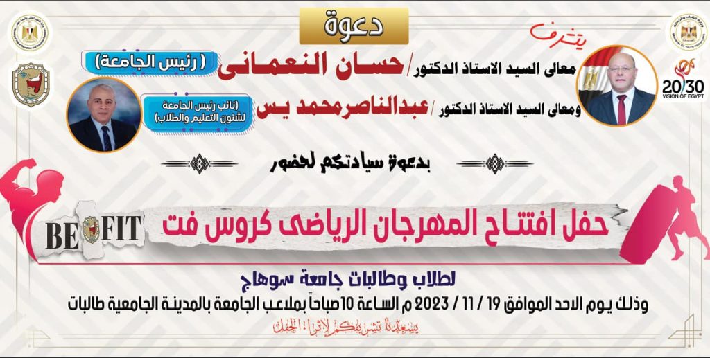 Tomorrow is the opening ceremony of the Be Fit Sports Festival at Sohag University