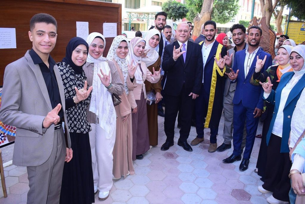 Dr. Hassan El-Nomany, President of Sohag University, participated in the final evaluation of the graduation projects of fourth-year students of the departments of Home Economics and Art Education, in the presence of Dr. Abdel Nasser Youssef, Vice President of the University for Education and Student Affairs, Dr. Lamia Shaaban Abu Zeid, Dean of the faculty, Dr. Zainab Mahmoud El-Sherif, Supervisor of the Art Education Exhibition,